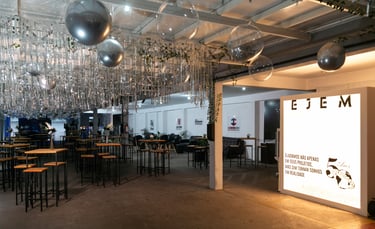 Logo na entrada da festa, todos os convidados passaram pelo túnel do tempo, onde apresentamos os grandes marcos da história da EJEM até os dias atuais. Entre esses marcos estão a fundação da EJEM, uma das primeiras empresas no mundo a receber o AutoCAD R14, a criação do projeto da Uniso, a pioneira em maquetes eletrônicas no interior, a formação do grupo EJEM, e muito mais!